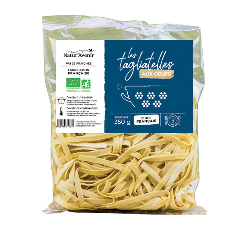 Pâte : semoule de blé dur, farine de blé tendre, eau, œufs frais.